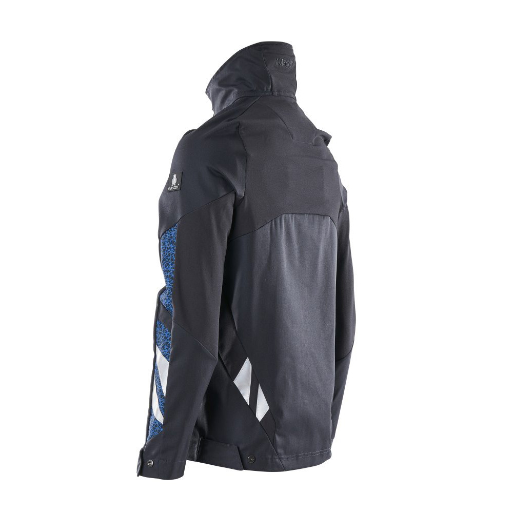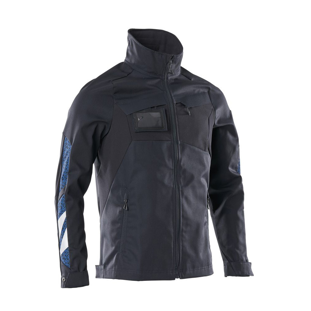 Glavni materijal/gornji materijal 65% poliester/35% pamuk 270 g/m² Keper Skupljanje 1-2%. Kategorija industrijske nege A1 Proizvod ima sertifikat da zadržava svojstva sa 50 pranja u domaćinstvu. Proizvod je pokriven REACH i ima OEKO-TEX® STANDARD 100 sertifikat broj 5548, sertifikovan od strane SHIRLEY. Bluesign® i EN ISO 14001 sertifikat Šiveno u fabrici sa sertifikatom SA8000, što je dokaz dobrih, sigurnih uslova za zaposlene i radnike Ima vodoodbojnu završnu obradu. TEHNIČKE INFORMACIJE Rastegljiva tkanina na delovima proizvoda. Kombinacija lagane tkanine kvaliteta 442 i ULTIMATE STRETCH u kvalitetu tkanine 511. Zakopčavanje sa patent zatvaračem i unutrašnjom preklopom. Džep na grudima sa patent zatvaračem. Odvojivi držač lične karte. Prednji džepovi sa patentnim zatvaračem. Unutrašnji džepovi. P Dugme za podešavanje dužine na rukavu i struku. Sa reflektorima.