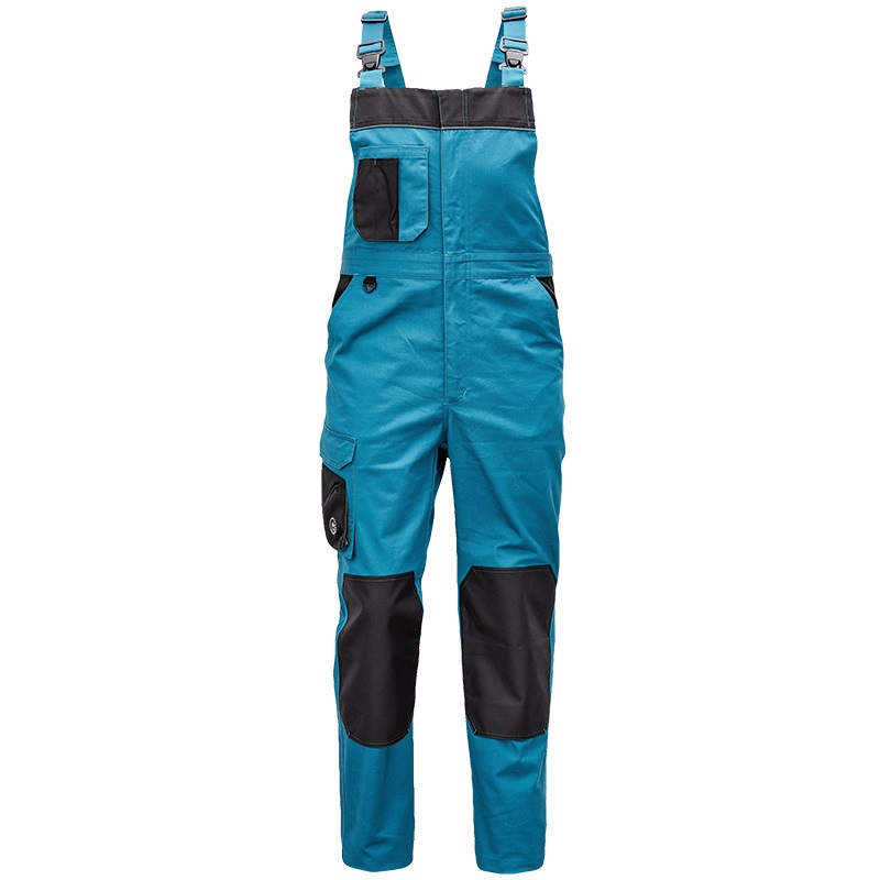 Muški radni kombinezon, proizveden od mešavine materijala 60% pamuk i 40% polyester, 240 g/m2. Modernog dizajna i veoma udoban za nošenje, a ujedno izdržljiv i otporan na habanje. Poseduje ojačanja na kolenima od Oxford materijala sa džepovima za umetanje štitnika za kolena. Elastičan pojas oko struka i podesiva dužina nogavica pružaju prilagodljivost ovog modela različitim tipovima građe. Mnoštvo praktičnih džepova za odlaganje alata. U lagerskoj ponudi polukombinezon je dostupan u petrol plavoj boji i teget boji, a po porudžbini dostpan je i u beloj, bež i sivoj boji.