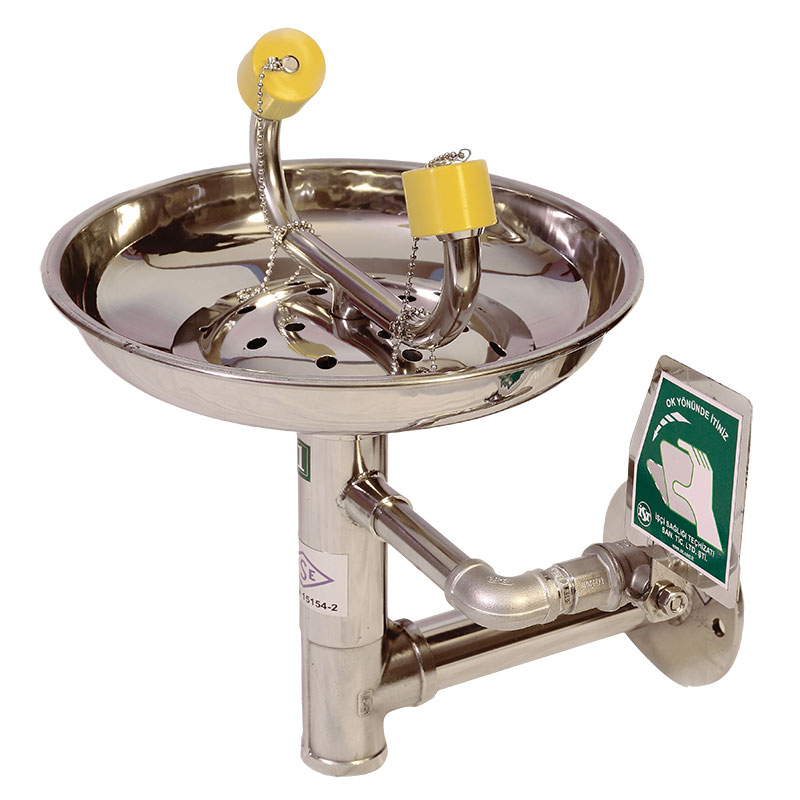 Industrijska stanica za ispiranje očiju, montažna na zid. Dostupna u varijanti od nerđajućeg ili galvanizovanog čelika. Aktivira se nožnim mehanizmom. Protok vode 11.5 l/min.