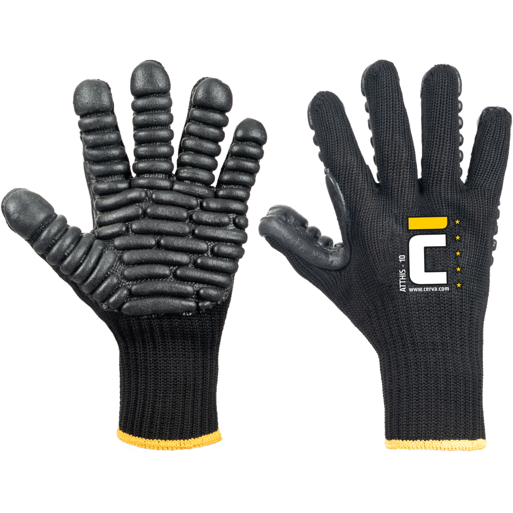 Sertifkovane antivibracione rukavice pletene od materijala koji je mešavina pamuka i poliestera, sa lateks antivibracionim umecima na dlanovima. Rukavice pogodne za zaštitu zglobova i ruku radnika prilikom upotrebe alata koji izazivaju jake vibracije.